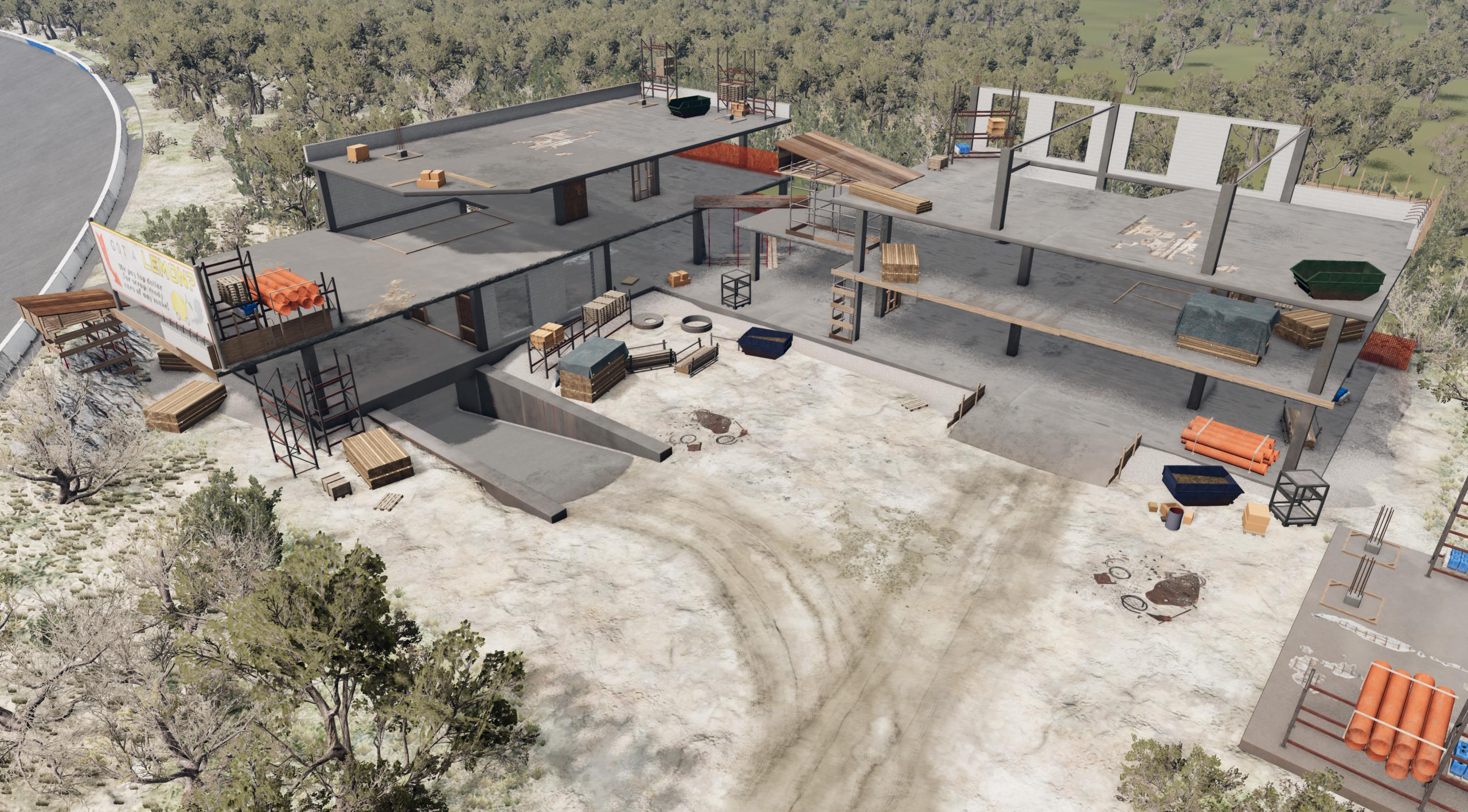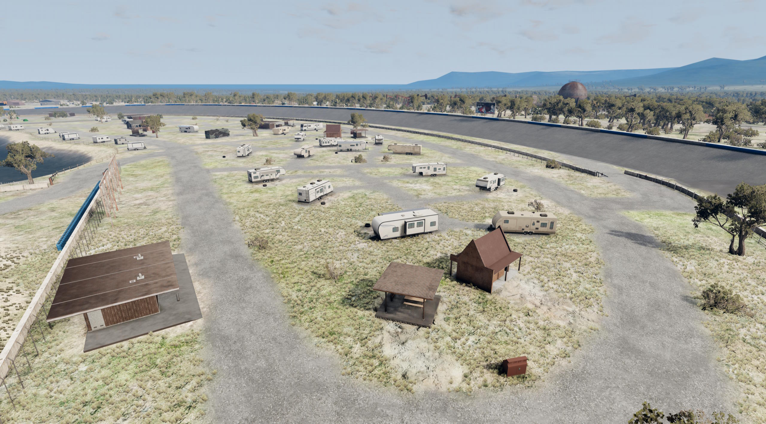 Lonestar Speedway is a large racing complex in the south of Texas that saw its hay day in the early to mid-70s and has since fallen out of favor due to safety concerns and being too remote for the growing world of Motorsport. Nowadays the facility is mostly used for amateur racing competitions on its infield road course and for high-performance driving events. When you play this map you can now relive both its past and current glory depending on what you want to do.