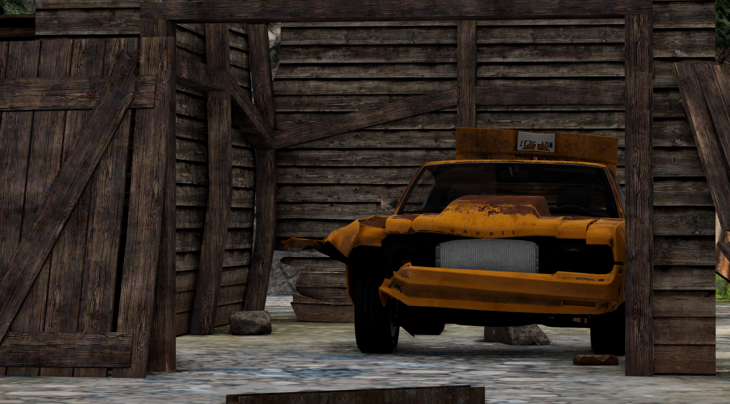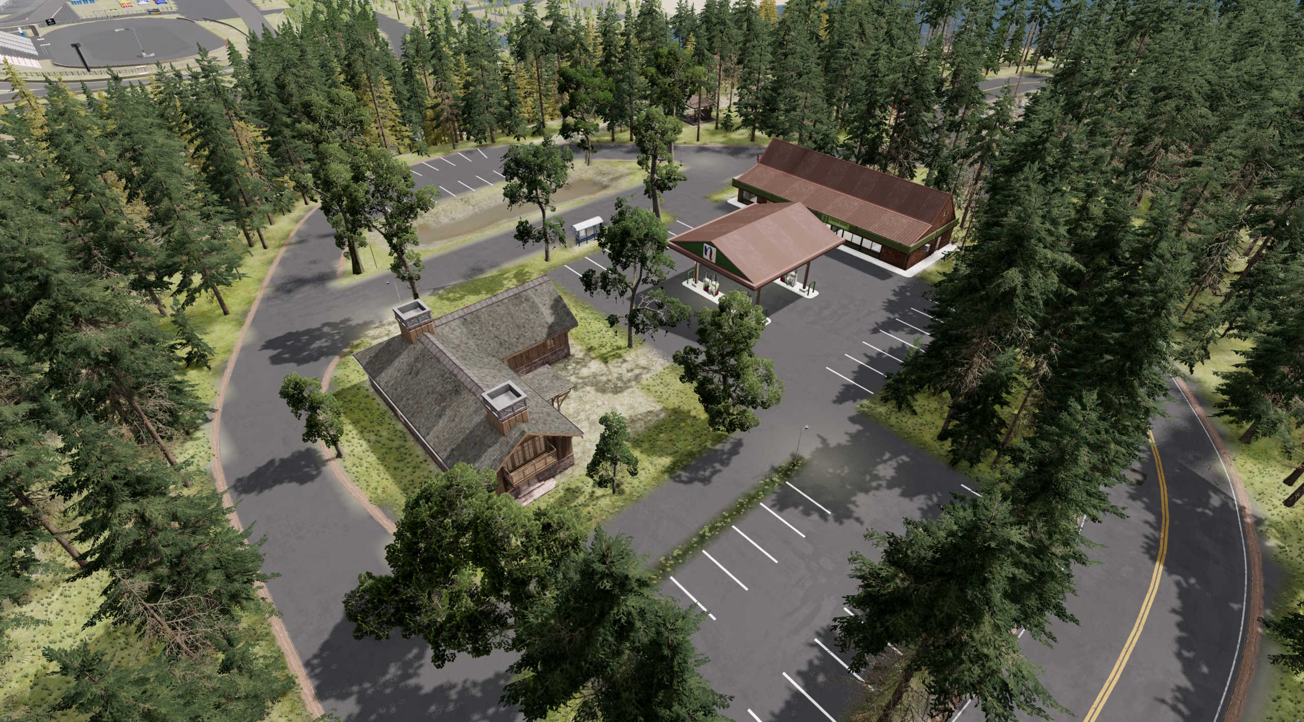 - A sawmill/lumber mill with an impromptu racing track inside