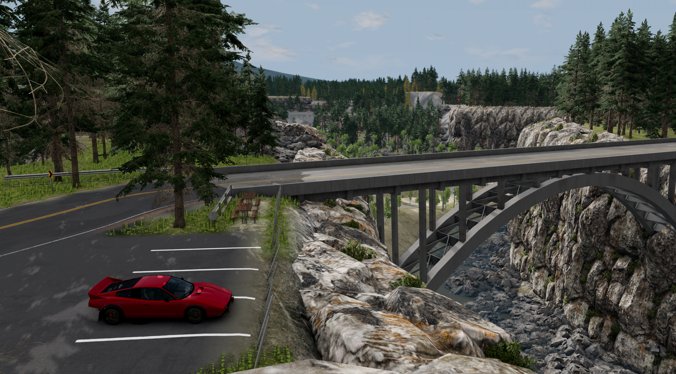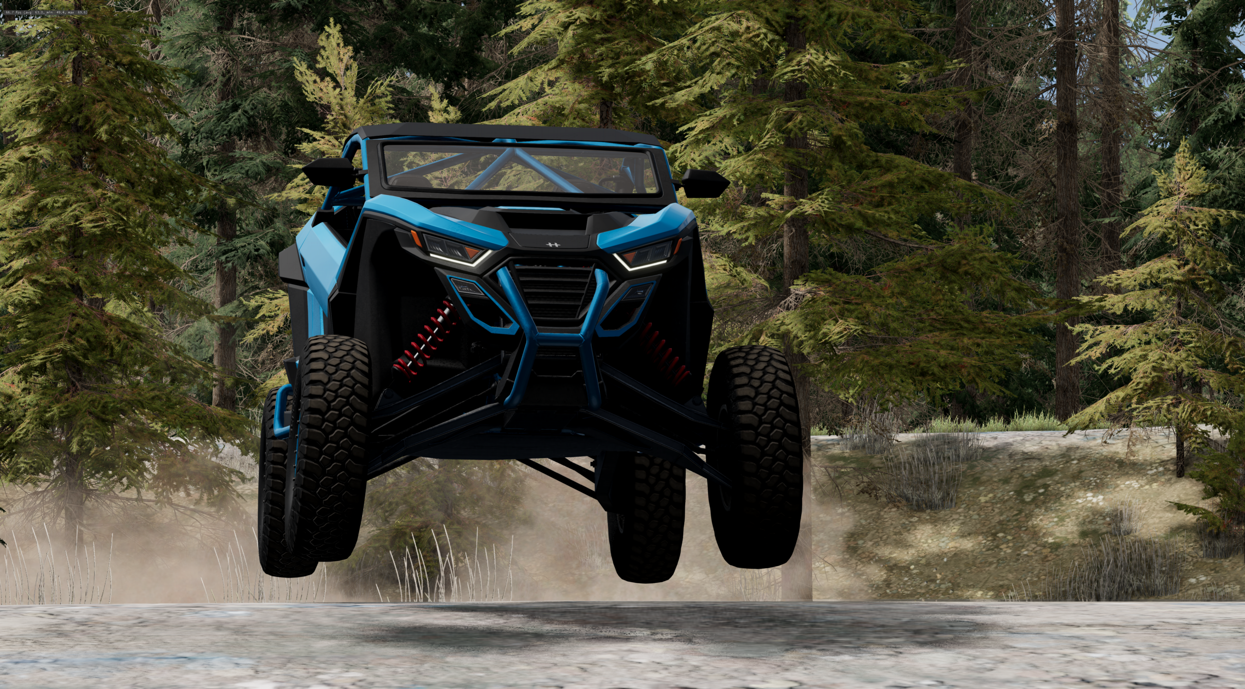 For those who enjoy a more relaxed and slow-paced drive off the beaten path don’t worry I have you covered too. On this map, there are 2 tough trails one going almost corner to corner and over two different mountains and the other going up a very steep hillside in a switchback fashion to reach a watchtower. And that’s not all because, within the grounds of the racing circuit, there is a full-blown offroad park to test your Jeeps and Trucks on with a ton of RC Crawler-themed obstacles like a log bridge and stair climb. And just in case you get bored of those options there is a giant mud bog area with super deep mud holes up to 6 feet deep in a few places.