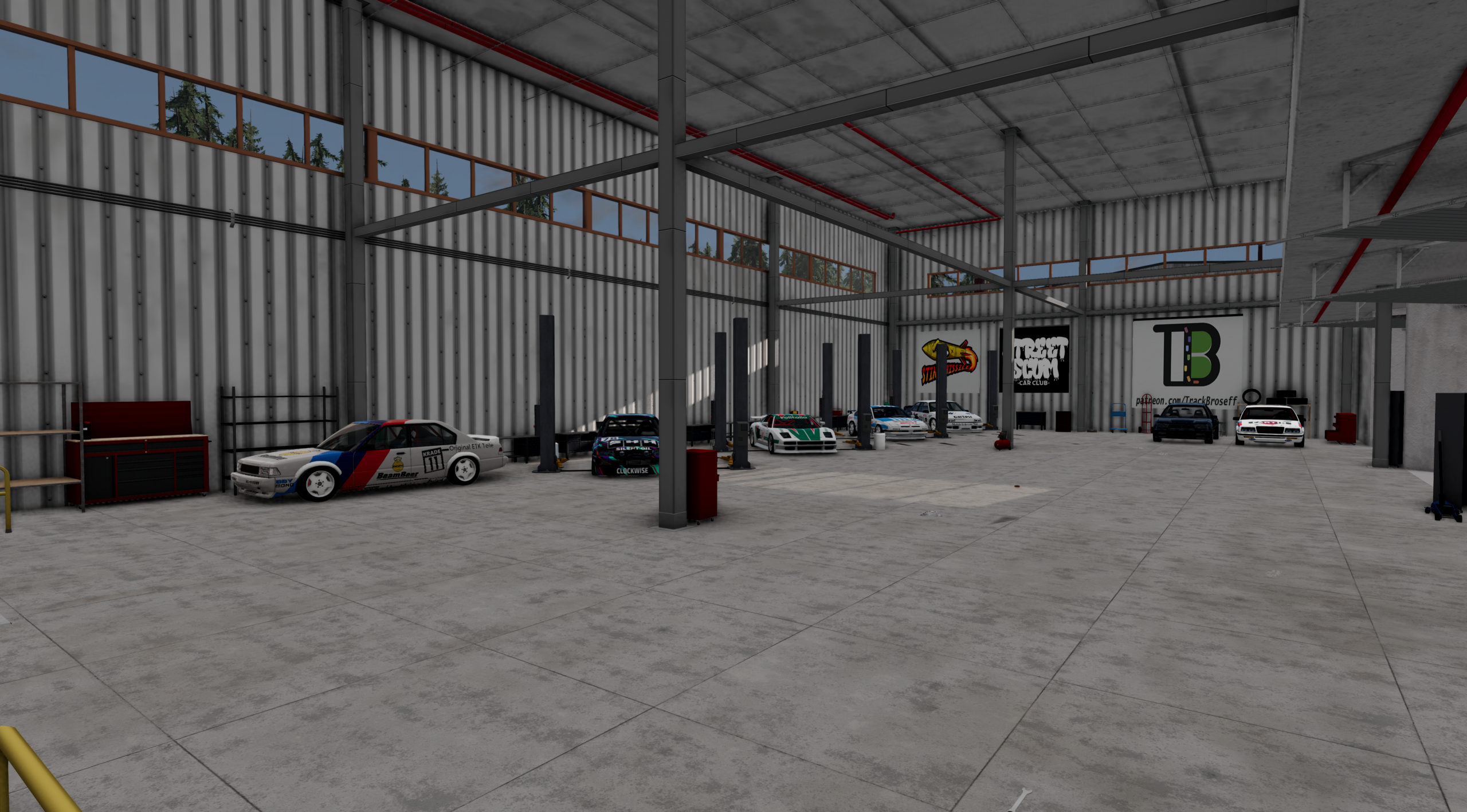 I had the pleasure when making this map to work with a great drifting community called Street Scum Car Club (you’ll see some logos dotted around) but in particular one of my main testers and a person I am very thankful for in the creation process was Stinkmissle. He helped me to create in their words “one of the best drift tracks on BeamNg” with full competition outer zones, inner clips, and even a proper drift start gate if you make it visible. There are wall rides, a Nikko drop, and banked corners for you drifters to sink your teeth into.