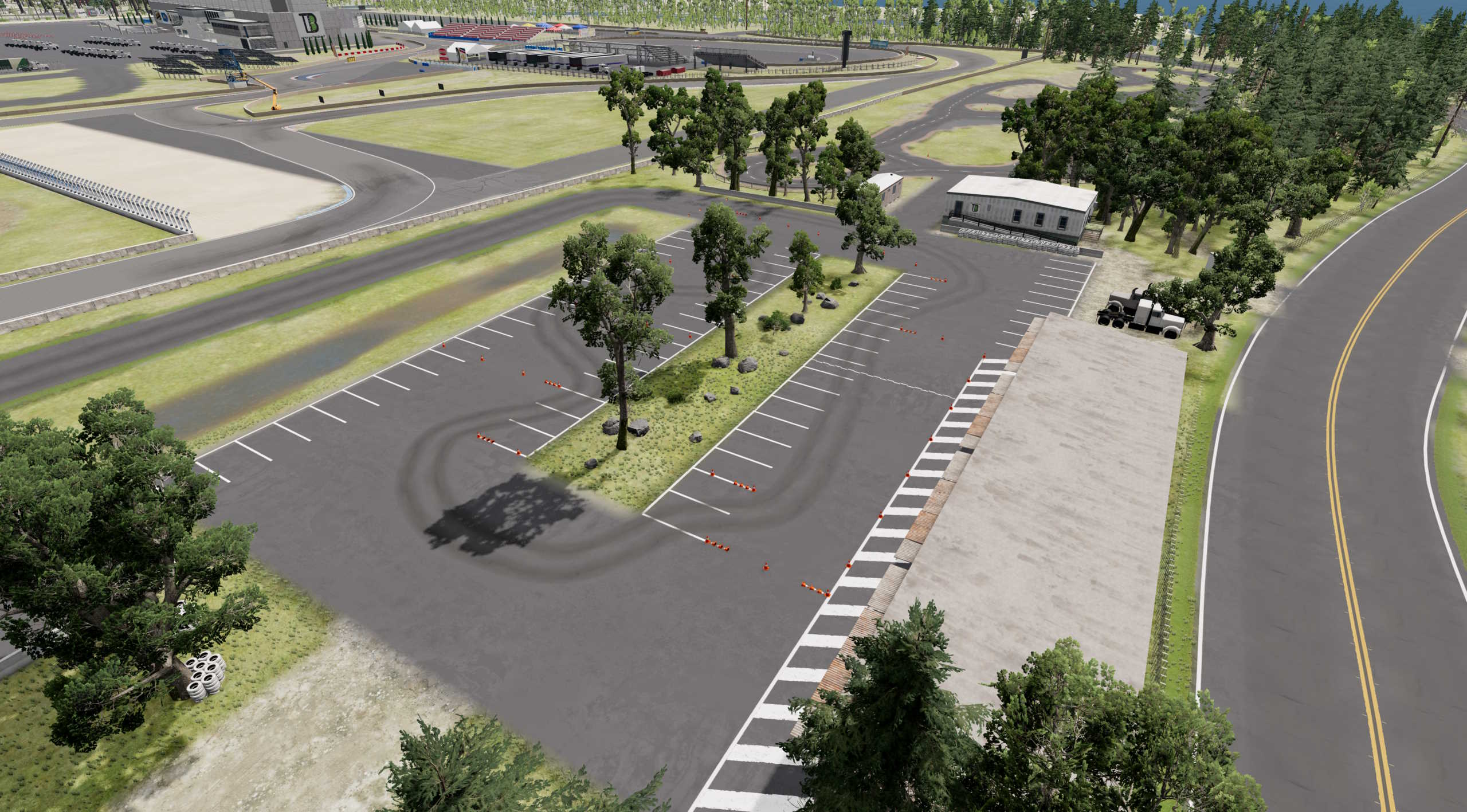On top of the larger full-size circuit, there are smaller tracks dotted in and around the Xero Parklands Motorsport Campusall with working AI racing both in missions and free roam. (Just spawn the cars you want to race and hit flee or random) The tracks included are: