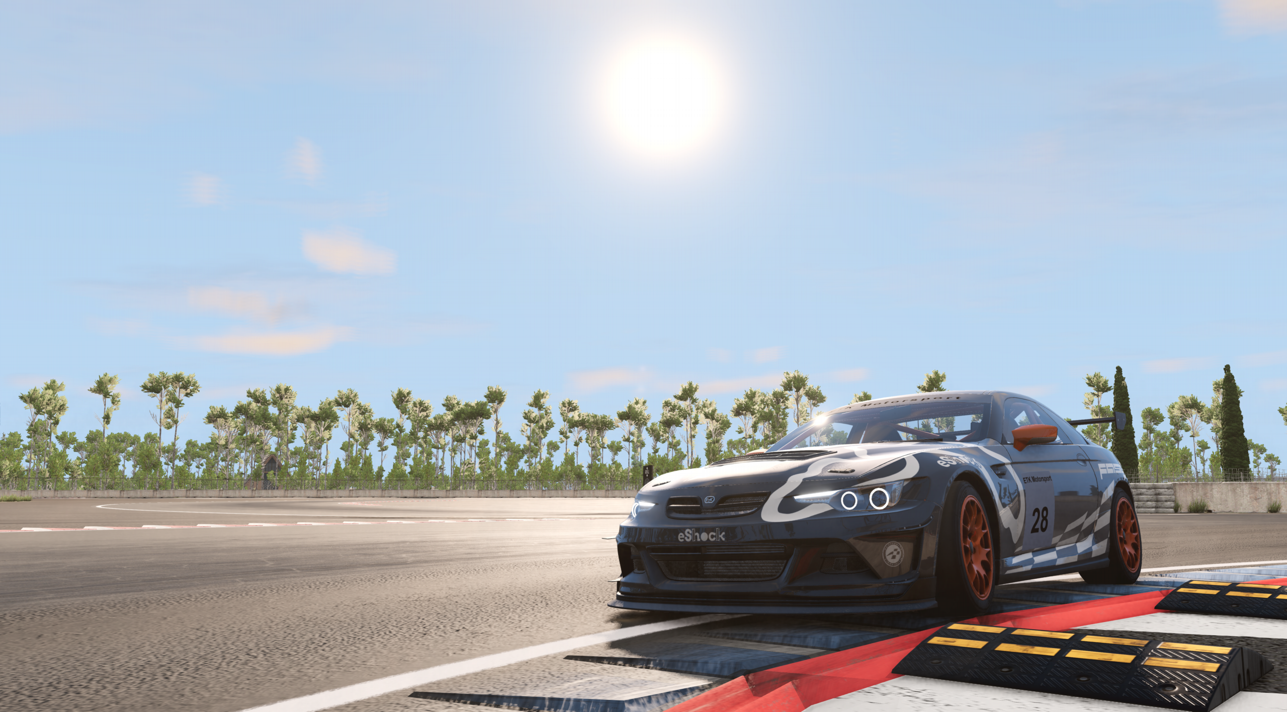 As previously mentioned there is a full-length bespoke racing circuit with highly detailed track mesh perfect for wheel and keyboard users alike. The full layout is 3.17 miles long and takes about two and a half minutes in a GTIV spec K series